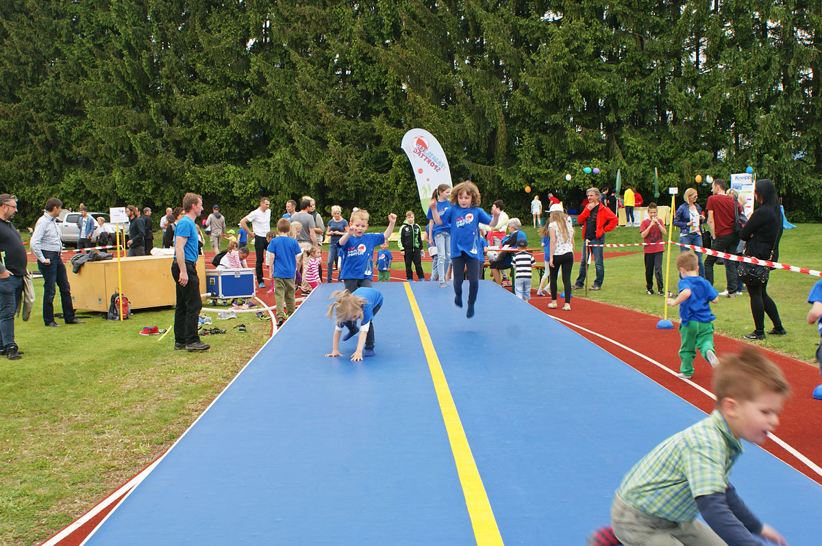 Über das breit gefächerte Angebot spannte sich ein bunter Bogen: Turnen, Tennis, Boxen, Hindernislauf für die Kinder, Fußball, Slackline, Airtrackbahn, aber auch Kneipp Aktiv, die Bergrettung, die Alpenvereinsjugend Baldramsdorf und die Modellfliegergruppe waren vertreten. 70 Kinder der Karate – Selbstverteidigung Gruppe aus Baldramsdorf beeindruckte mit einer glanzvollen Schauvorführung. Alle Kinder erhielten bei der Anmeldung ein Sportleibchen und einen Stationspass, in dem sie fleißig Stempel von allen besuchten Stationen sammelten. Dieser Pass konnte am Ende für das große Gewinnspiel abgegeben werden. Dank zahlreicher Spender konnten viele tolle Preise an die Gewinner übergeben werden.