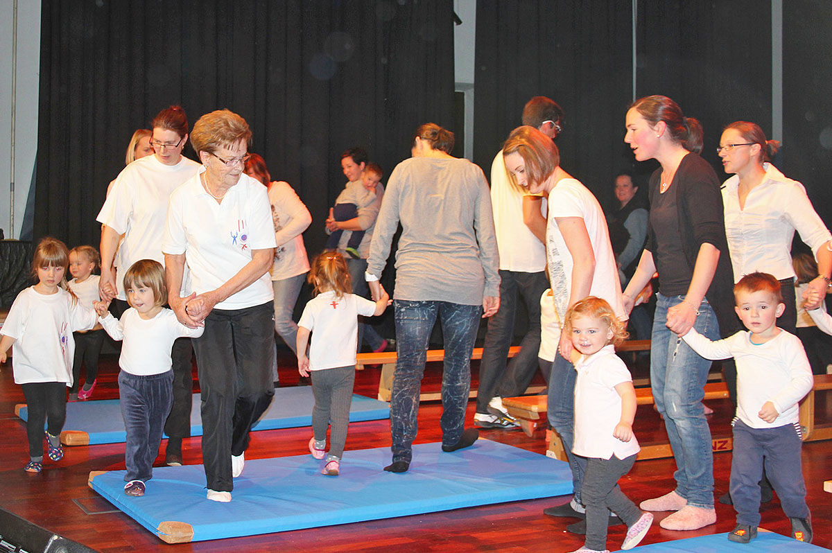 Die einzelnen Ausschnitte aus der Riegenarbeit legten Zeugnis darüber ab, dass sich hier qualifizierte Vorturnerinnen und Vorturner der Jugend widmen. Das angebotene Turnprogramm umfasst alle Altersstufen, wobei der Schwerpunkt in der Vermittlung der Grundschule im Gerätturnen und der Leichtathletik liegt. Ein weiterer Schwerpunkt liegt im Gesundheitsturnen und in der Vermittlung allgemeiner Kondition in der Turnstunde für Konditionsgymnastik. Ab Mittwoch, den 13. Jänner wird ab 19 Uhr 45 eine weitere Turnstunde für Paare angeboten. Sportlicher Tagesausgleich mit viel Bewegung, Spiel und Spaß. Egal wie man sich verständigt. Interessierte sollten jedenfalls zu zweit kommen.